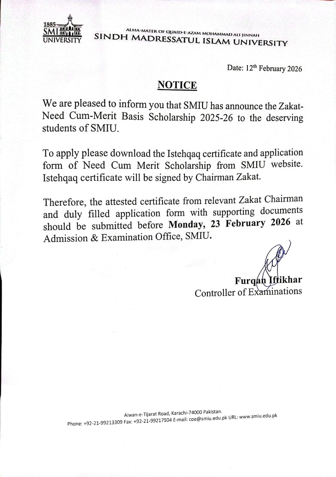 The Management of SMIU has announced HEC-Need Based Scholarship